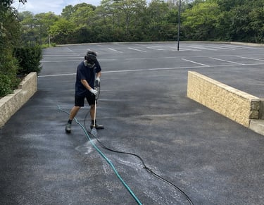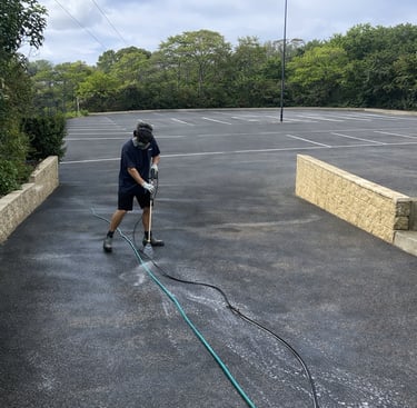 Removing dirt, stains, and buildup from high-traffic parking areas.